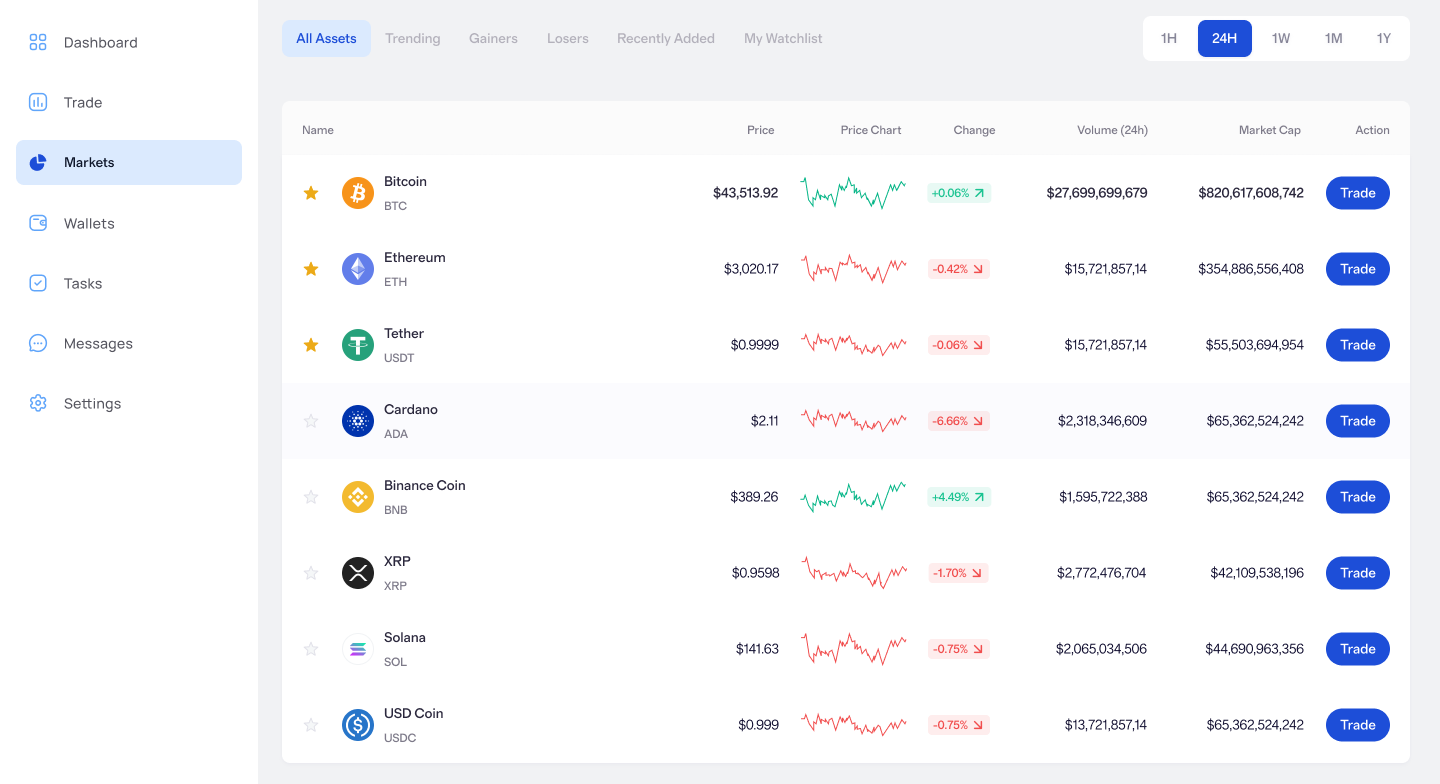 Trevona Qlistera bietet Ihnen Zugang zu den dynamischsten Finanzmärkten der Welt – alles innerhalb einer intelligenten Plattform. Ob Sie in Kryptowährungen investieren, wichtige Forex-Paare handeln oder von Bewegungen an der Börse profitieren möchten – unsere KI-gestützten Tools helfen Ihnen, smarter, schneller und mit mehr Vertrauen zu handeln.